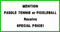 (Mention PADDLE TENNIS and receive a Special Price!)